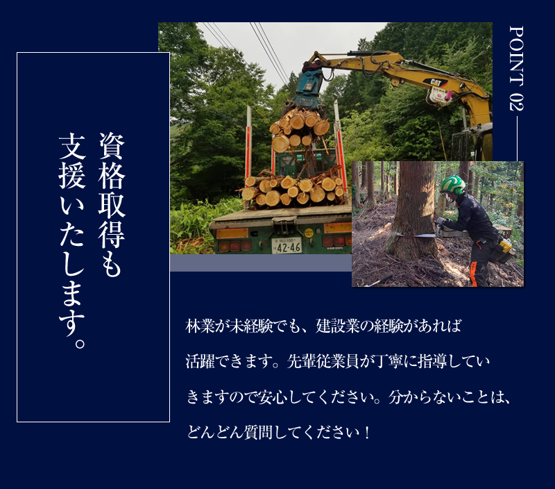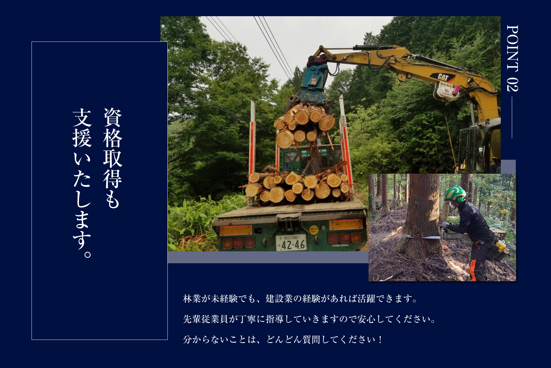 | 事業内容 | 素材生産業務・伐採・集材・造材業務・森林管理業務 |